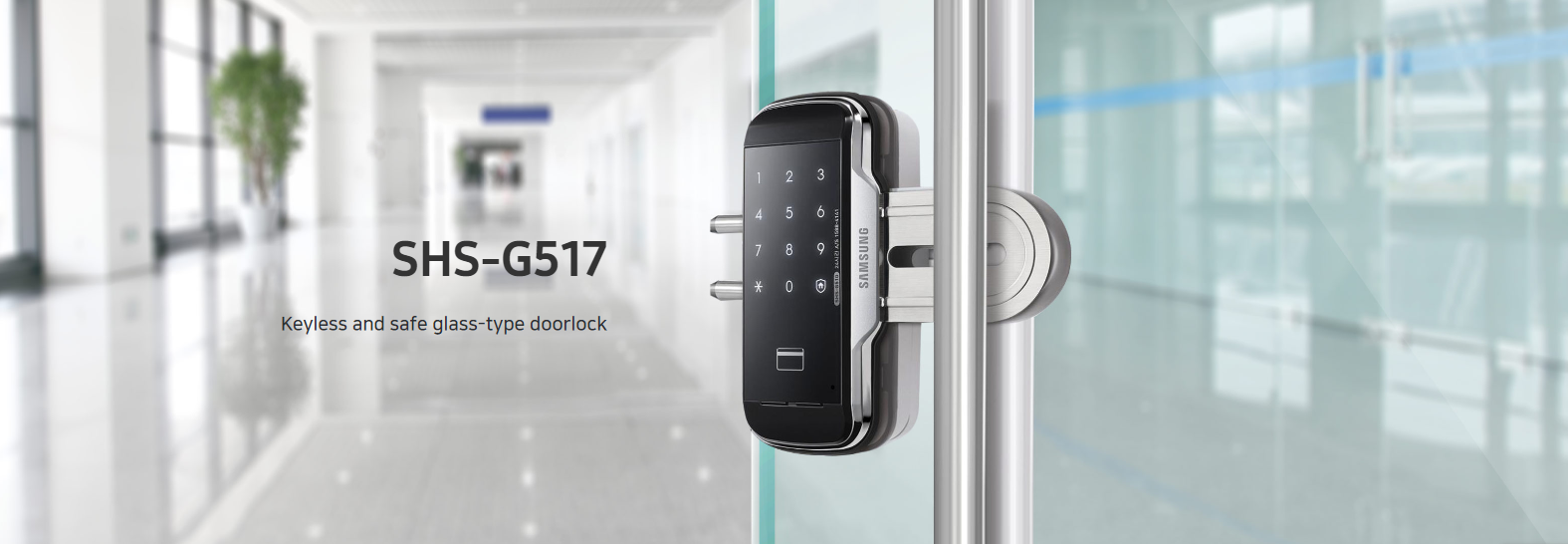 Khóa cửa điện tử Samsung SHS-G517 – Khóa cửa điện tử không tay cầm giá rẻ. Với thiết kế đơn giản, sang trọng, khóa phù hợp lắp đặt với kính nhà phố, cửa kính văn phòng, cửa kính nhà máy…..