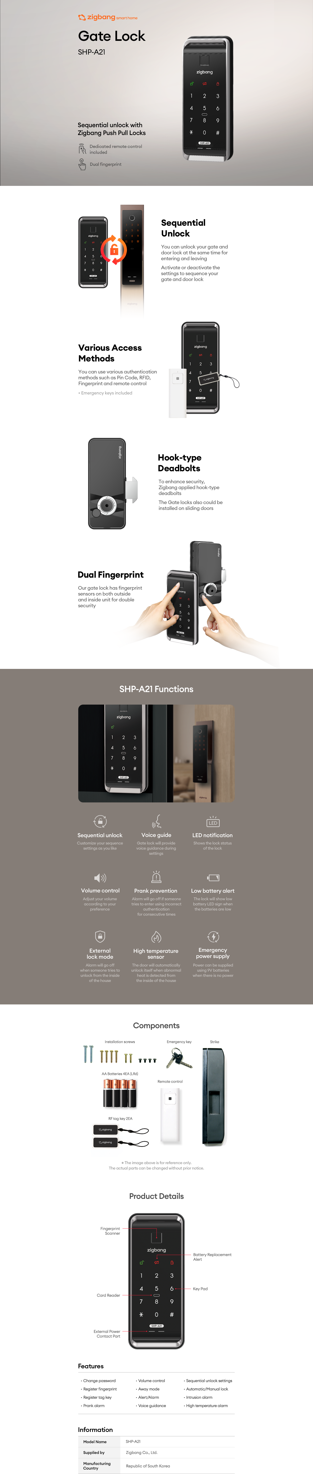 | Phương thức mở khóa | Mã số, thẻ từ, Bluetooth |