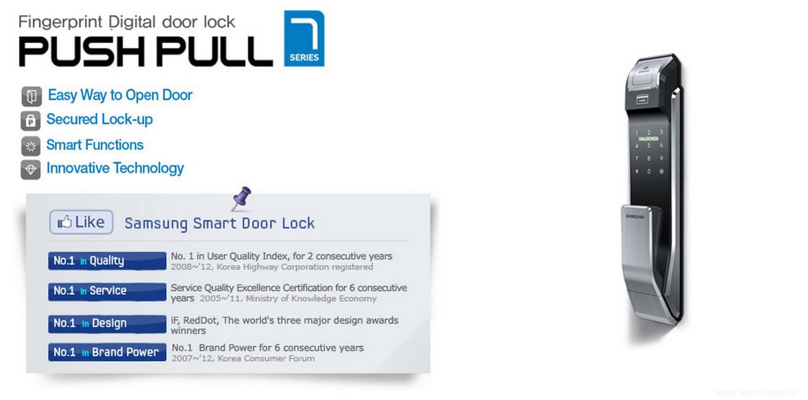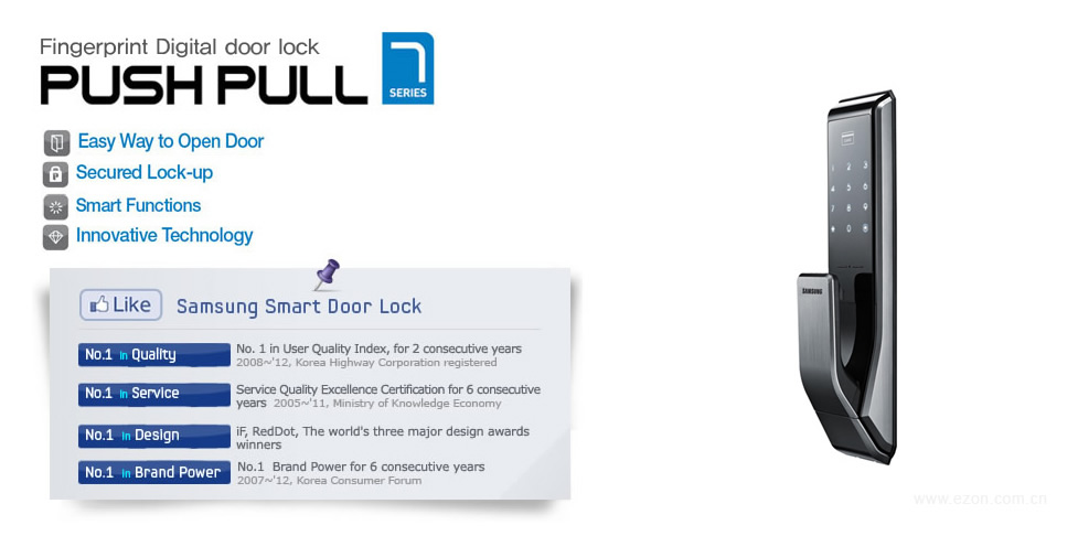Một “nữ hoàng sắc đẹp” của khóa điện tử Samsung không có tay cầm, đạt giải thưởng ý tưởng thiết kế danh giá của Mỹ, khóa SHP DS510 đã đốn tim người dùng bởi kiểu dáng nhỏ gọn nhưng có võ.